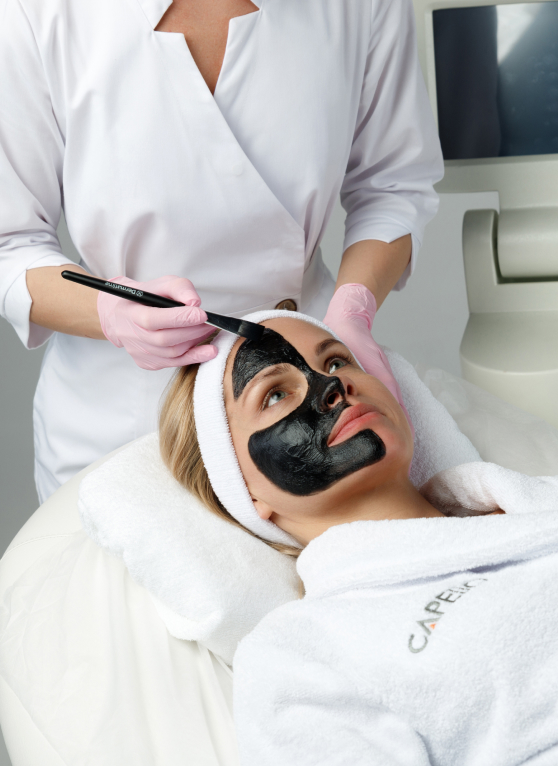 В ходе процедуры используется медицинский карбон (активированный уголь). Он наносится тонким слоем на поверхность кожи в виде специального лосьона. Внешне это выглядит как будто вам нанесли грязевую маску.